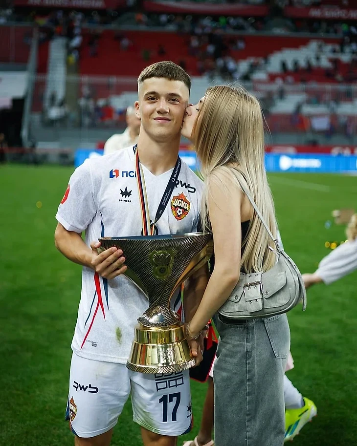 Кирилл и Арина вместе минимум с 2023-го. 11 июня того года ЦСКА в «Лужниках» обыграл в серии пенальти «Краснодар» и завоевал Кубок России. После финального свистка Глебов фоткался с трофеем вместе с любимой девушкой.