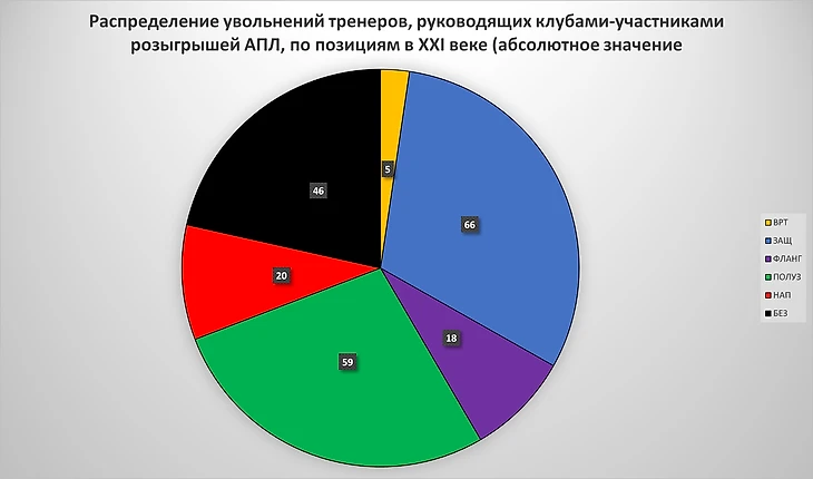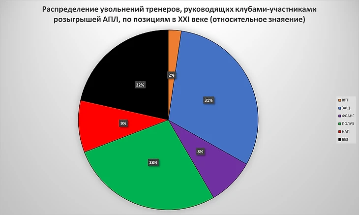 Цифры во многом производны от числа работавших и работающих тренеров: чем больше тренеров экс-защитников, тем выше вероятность того, что уволят тренера экс-защитника.