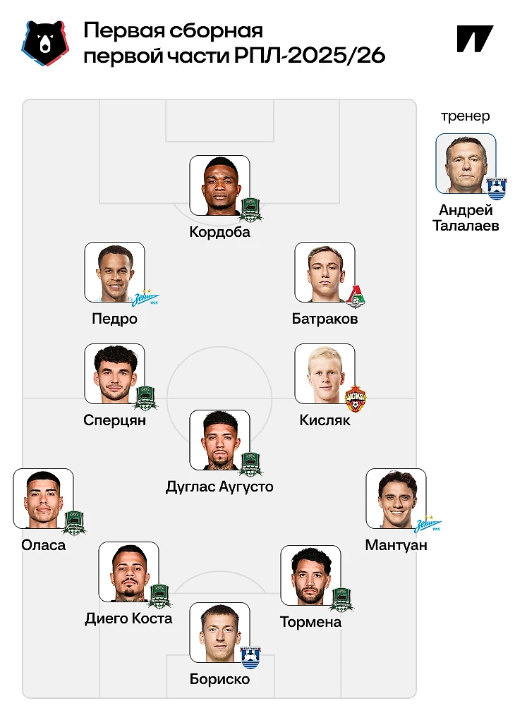 Сборная первой части РПЛ: много игроков «Краснодара», а тренер – Талалаев