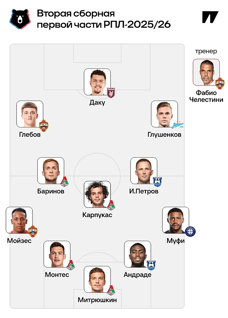 Альтернатива № 1: Фабио Челестини, ЦСКА. Если бы после ухода Марко Николича вам сказали бы, что у ЦСКА будут шансы на зимнее чемпионство, вы наверняка не поверили бы. Если бы в июне 2025-го вам сказали бы, что основными (и эффективными) фланговыми полузащитниками ЦСКА станут Данил Круговой и Кирилл Глебов, вы точно не поверили бы. Челестини проделал титаническую работу – и в какой-то момент даже соперничал бы с Талалаевым за звание тренера первой части сезона. Но игра ЦСКА все же слишком сильно зависит от трио Кисляк – Обляков – Матеус Алвес – и травма бразильца серьезно сказалась на атаке. Атаке, в которой нет нападающего для команды, борющейся за чемпионство. Топ-4 в таблице и топ-4 по голам в таких условиях – безусловная заслуга Челестини.