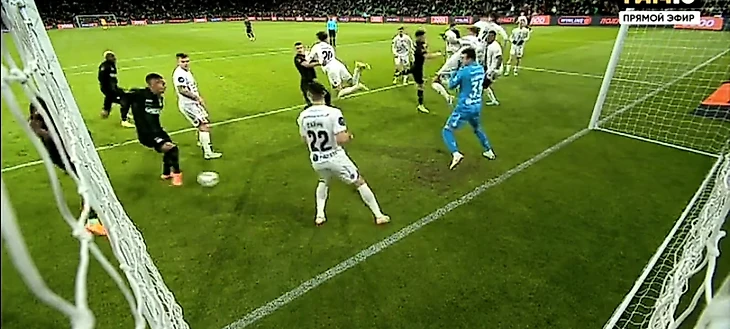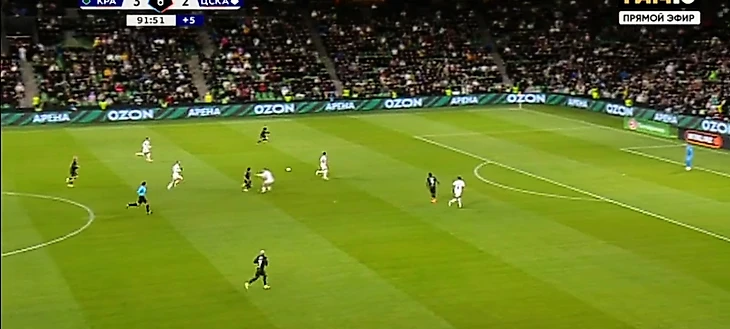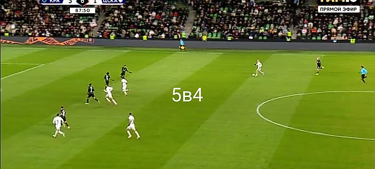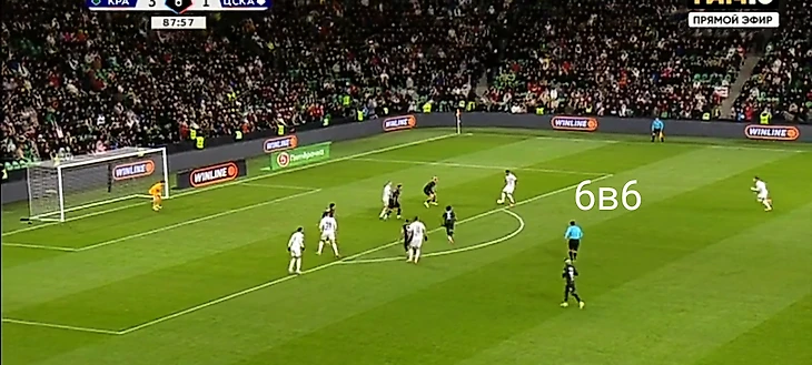 «Краснодар», ведя в два мяча, идёт в прессинг шестью(!) игроками с персональной опекой даже для вратаря.
