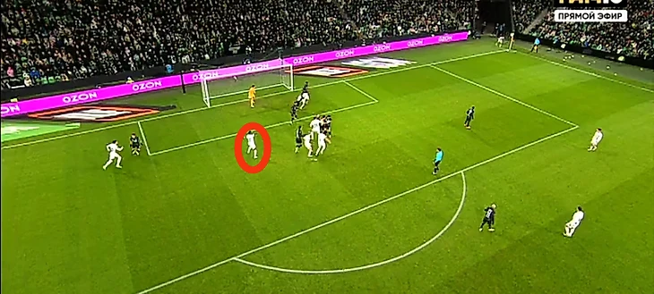 В следующий угловой на дальнюю отправился уже Коста. Изначально с ним собирался играть Вильягра, но тот в последний момент решил передать Диего всё тому же Гайичу, а сам отправился в центр штрафной, чтобы уравнять количество игроков в этой зоне.