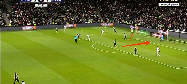Позиционных атак у ЦСКА было минимум – всë-таки 39% владения дают о себе знать. Как ими собирались пользоваться? По крайней мере в первом тайме пытались запустить в забег Глебова, который специально для этого часто уходил шире. Да вот только Коста – не Харри Магуайер и не пускает за спину всех подряд. С Кириллом тоже справился.