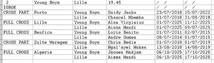 3.Соперники играли за один и тот же клуб (возможно в разное время- NO CROSS)
