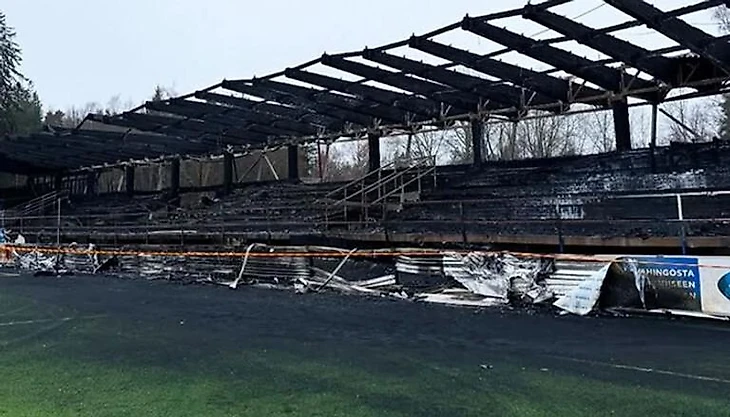 На стадионе «Техтаан кенття» финского клуба «Хака» произошел пожар: сгорела одна из трибун, пострадал газон.