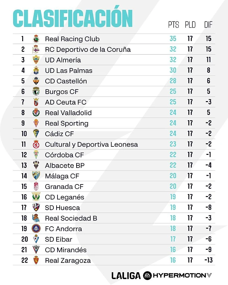 «Расинг» забил во всех 17 турах Сегунды-2025/26 – лучшая серия команды за 75 лет. Причем наколотили уже 40 мячей: в среднем 2,35 за игру – монструозно! Порядочно оторвались от преследователей, даже у мобильной «Альмерии» Руби на семь меньше. С другой стороны, пропускают сантандерцы тоже прилично: уже 25 голов, больше только у команд из низа таблицы и «Альбасете».