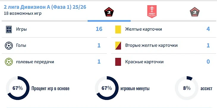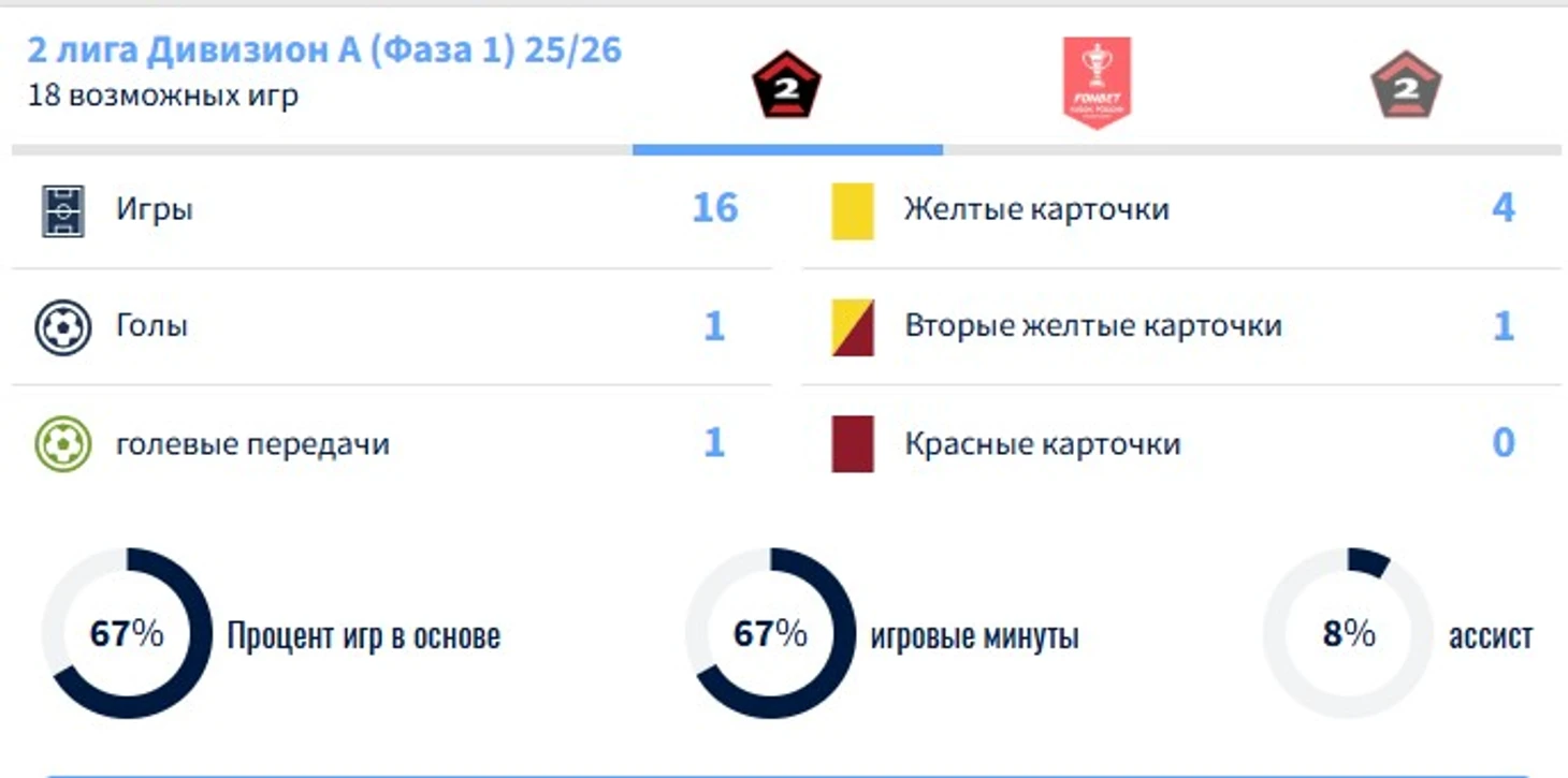 В первой половине сезона в заявке также были Дмитрий Кудрык и Магомед Рамазанов.Дмитрий не сыграл ни одной минуты в сезоне, а вот Магомед всё-таки отметился выходами на замену на последних минутах матчей. При этом многие игры позволяли дать ребятам больше игровых минут, но ограничивалось всё в лучшем случае 5-10 минутами.
