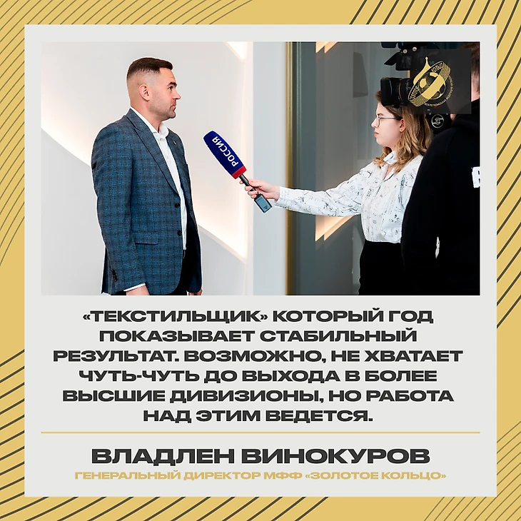 10 декабря в Иванове состоялась Церемония награждения. Участие в ней приняли генеральный директор МФФ «Золотое кольцо»Владлен Винокуров, президент Ивановской областной Федерации футбола Алексей Нагналов, директор СШ «Текстильщик» Василий Горощук и советник губернатора Ивановской области по спорту Сергей Чесноков.