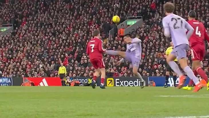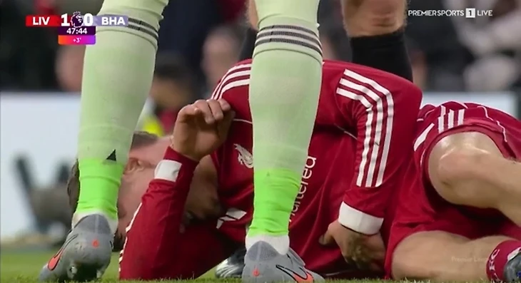 Мерсисайдцы, и так страдающие из-за травм, чуть не остались еще и без Флориана Виртца. Под занавес тайма Диего Гомес попал немцу шипами в грудь, выглядело сурово.