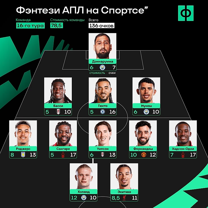 Это самые эффективные игроки 16-го тура в Фэнтези АПЛ на Спортсе’‘.