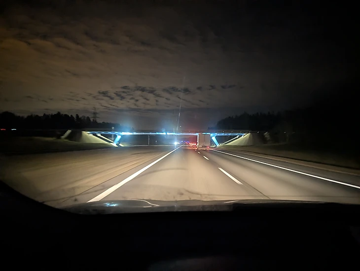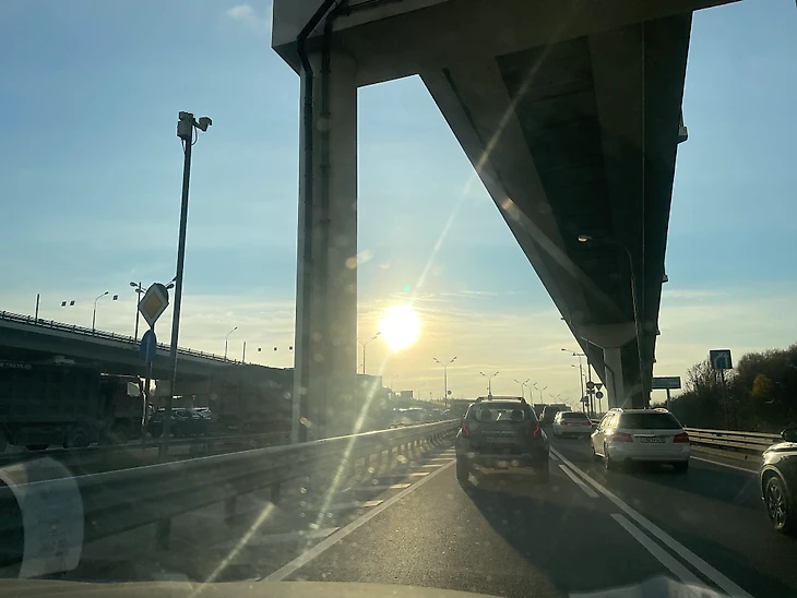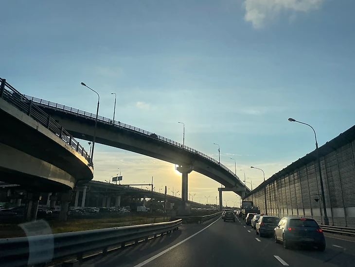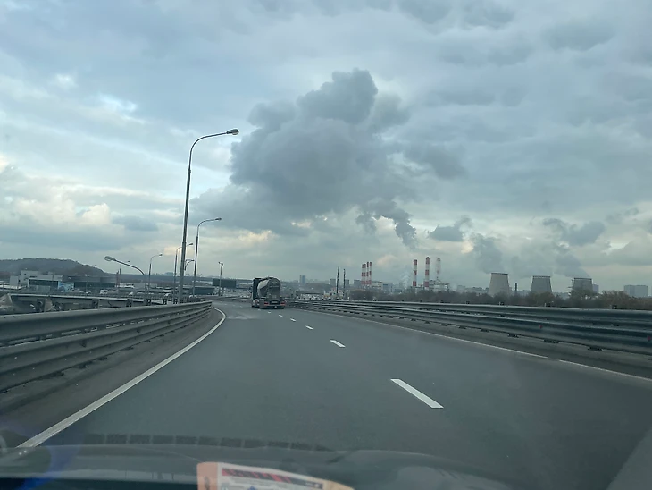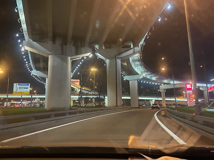 По мере поездки отрываются индустриальные пейзажи на развязках.