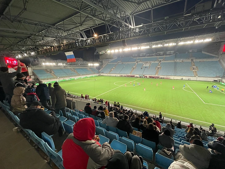 Финальная точка нашего путешествия - «Арена Химки» и матч Спартак (Кострома) - Черноморец (Новороссийск). На входе в стадион нас ждал квест с покупкой билетов, хотелось приобрести бумажный тикет. Не получилось, приобретаем электронные и мчим на трибуну.