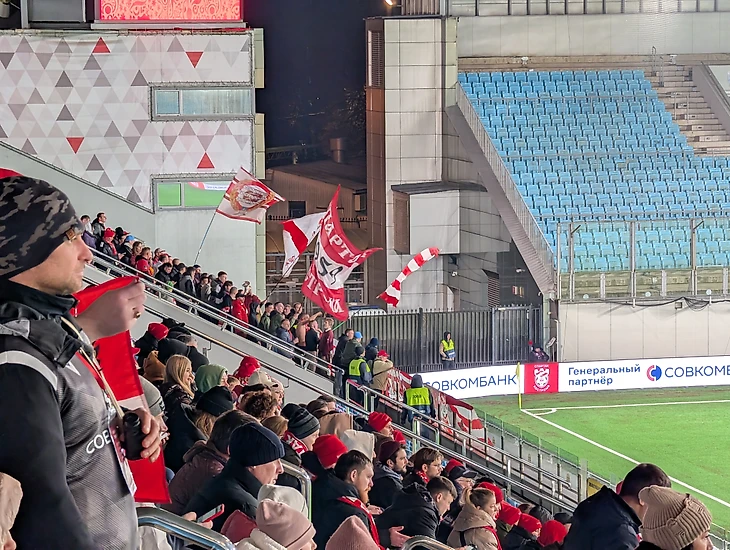 Свисток на перерыв. Соратник приобретает значок Спартака из Костромы в свою коллекцию, я же воздерживаюсь. В сентябре 2024 приобрел такой же в Костроме на матче Кубка России, о котором писал здесь. Пора двигать домой. Закупаемся в Дикси и мчим.