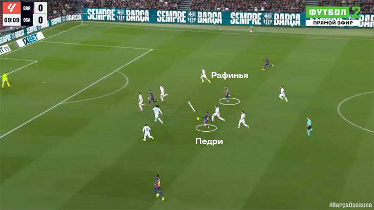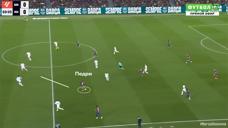 Благодаря движениям Педри и решениям с мячом «Барса» постепенно вскрыла весьма организованный низкий блок. Во время первой голевой атаки Педри нашел пространство и развернул атаку.
