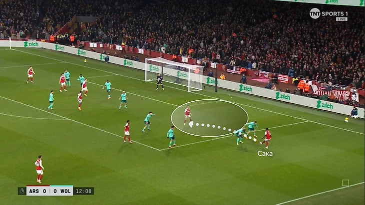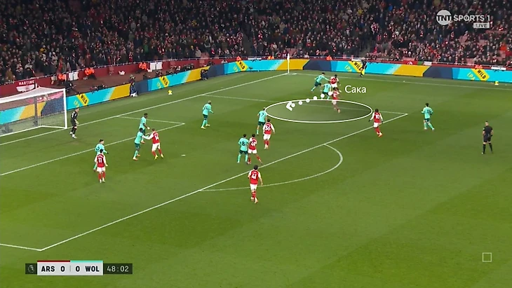 «Арсенал» против «Вулверхэмптона» очень много владел мячом (69% времени) и сделал акцент на правый фланг (48% атак против 28% слева). Хозяева доводили мяч до Букайо Сака и полагались на его дриблинг и умные решения после обыгрыша.