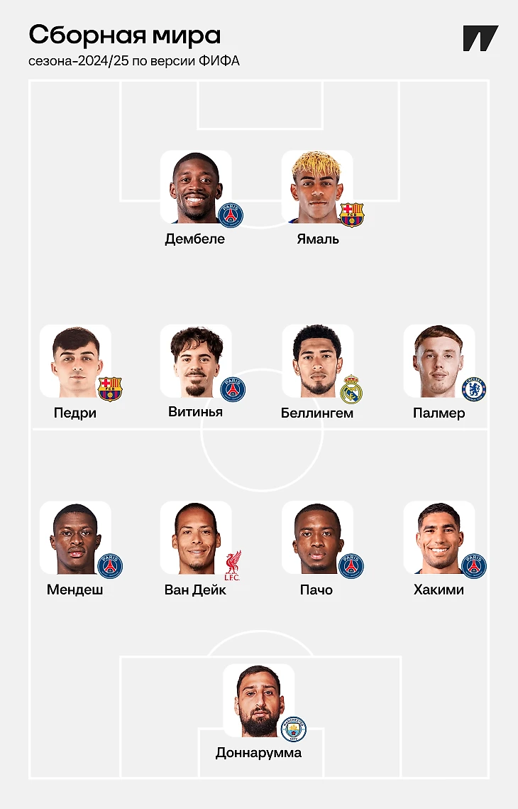 Рафинья не попал даже в топ-3. Там Дембеле, Килиан Мбаппе и Ламин Ямаль.