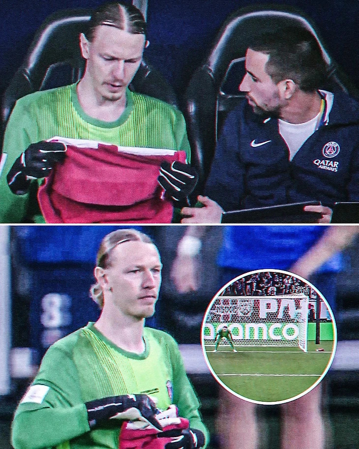 Официальный аккаунт Лиги 1 выяснил, что Матвей спрятал шпаргалку для одиннадцатиметровых в полотенце.
