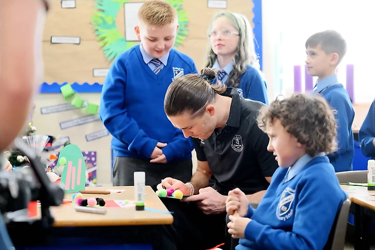 Футболист поболтал с детьми, вместе с малышней мастерил поделки к праздникам.