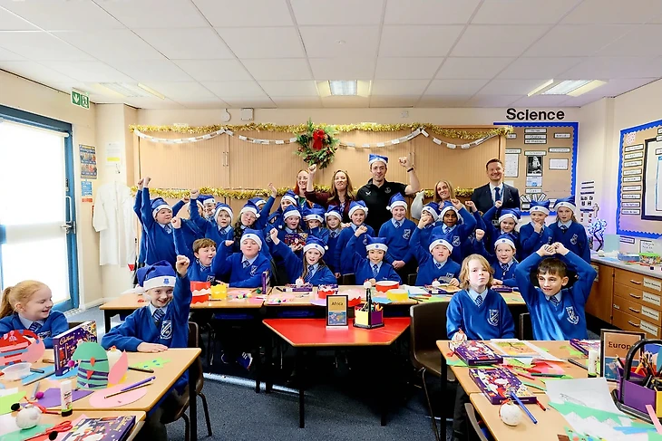 Все одноклассники Джорджи получили от Санта-Грилиша праздничные шапочки и сладкие подарки.
