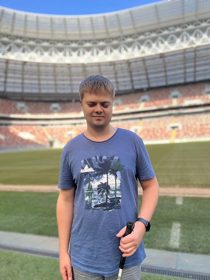 Как Федор описывал эмоции незрячих ребят, впервые побывавших на настоящем стадионе (в Ярославле) – прямо на поле: «Какое-то даже детское счастье от возможности прикоснуться к траве, воротам».