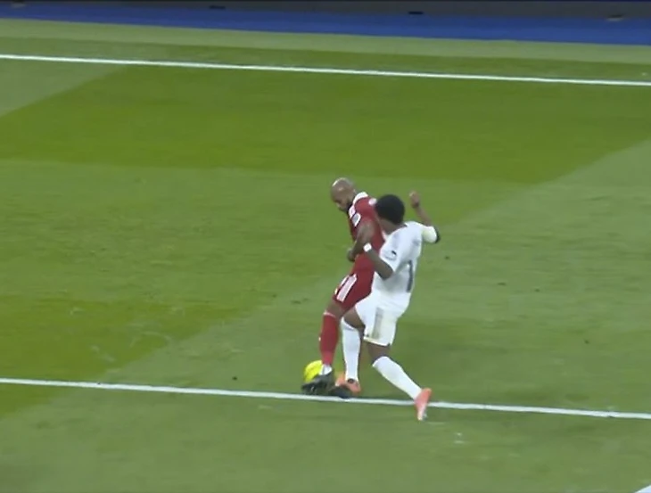 Но удалили в итоге защитника. На 68-й схватил вторую желтую, сбив Беллингема.