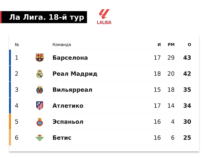 Килиан оторвался от Феррана Торреса в гонке бомбардиров, у француза уже 17 мячей в чемпионате – космос. А «Реал» подбирается к «Барсе», теперь их разделяет всего один балл в таблице – впрочем, только до матча каталонцев с очень непростым «Вильярреалом».