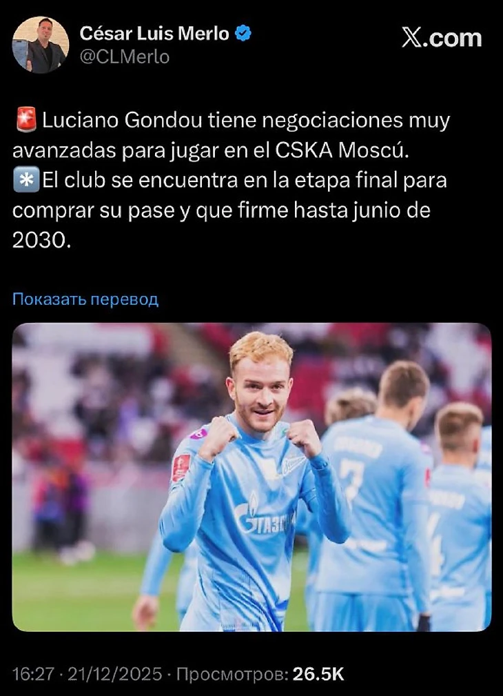 Лусиано Гонду находится на очень продвинутой стадии переговоров о переходе в ЦСКА Москва.