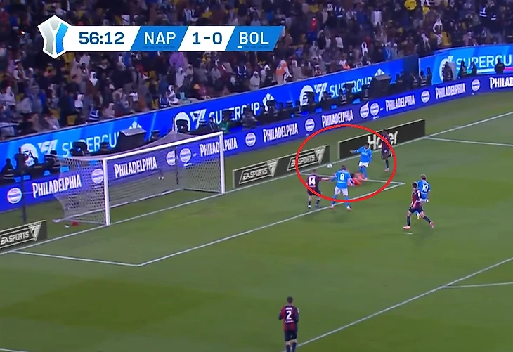 «Болонья» создала первый момент только на 55-й, когда Льюис Фергюсон бил головой с близкого расстояния – но прямо в Ваню Милинковича-Савича. А через минуту «Наполи» наказал.