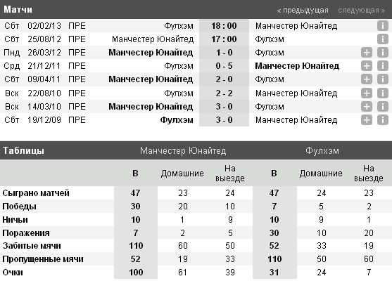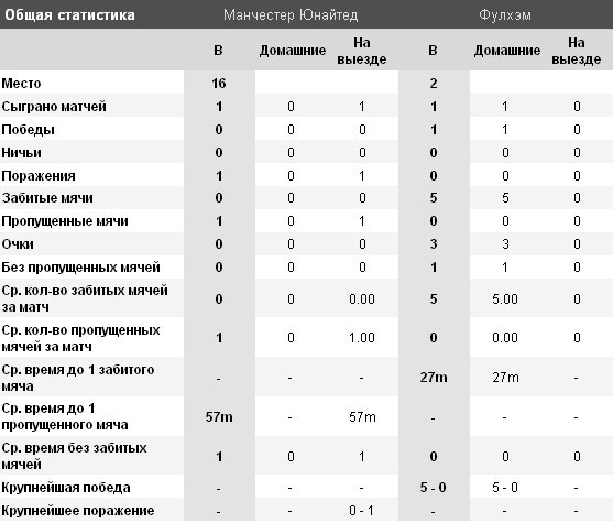«Манчестер Юнайтед» не проигрывал «Фулхэму» в последних 5-ти матчах Премьер Лиги, одержав в них 4 победы, и во всех четырех победных матчах, не пропустив голов в свои ворота.