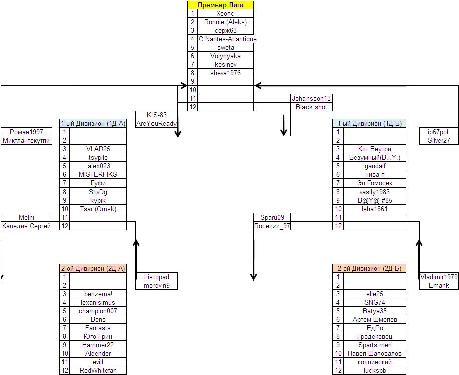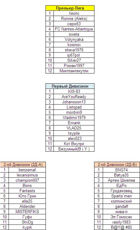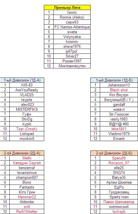 Таким образом, состав Лиг и Дивизионов будет таким (красным выделены те, кто не примет участие):