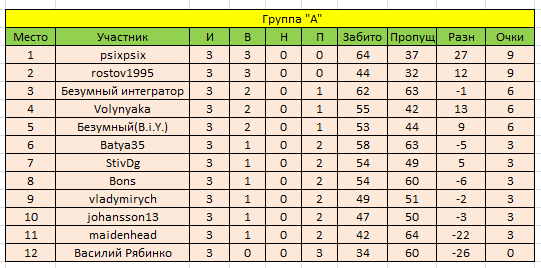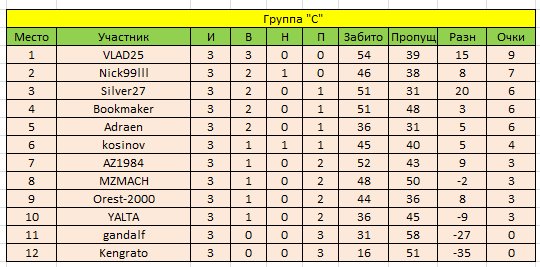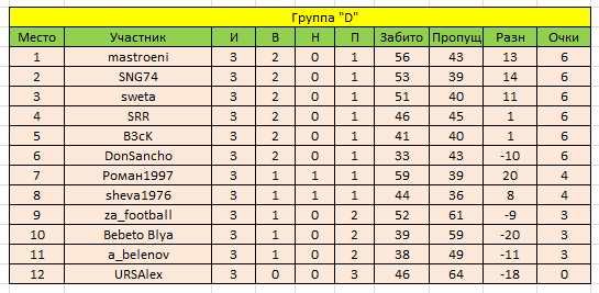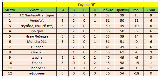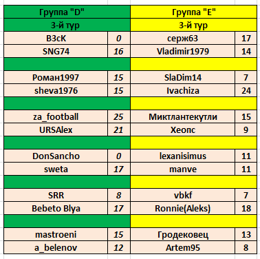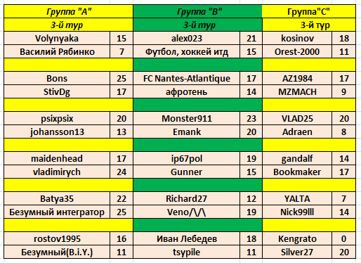 Матчи третьего тура принесли следующие результаты игр в группах:
