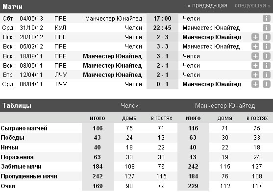 Подопечные Фергюсона не проигрывали «Челси» в 6 последних матчах во всех турнирах – 5 побед, 1 ничья.