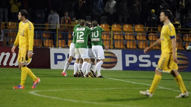 (Клеснил (слева) и Ордош радуются первому голу в ворота Грушки. Фото: sport.cz)