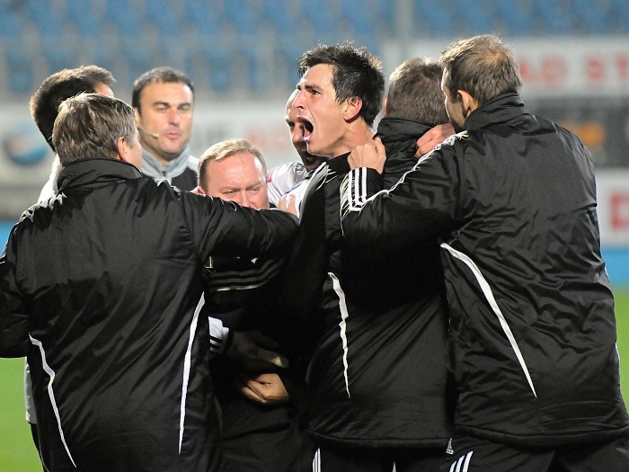 А чемпион-то, в свою очередь, не настоящим оказался. Уже на 1-й минуте Махмутович убежал от всей обороны «Слована» и в ближнем бою переиграл Бичика. В ответ Либерец придумал супермомент, по ходу которого сразу несколько футболистов гостей получили возможность отличиться, но мяч так и не оказался в воротах Григара. За 10 минут до перерыва свой первый гол в элите чешского футбола провел 18-летний Михал Люфтнер, откликнувшись на ближнем углу вратарской на передачу партнера от углового флага. Во втором тайме сокращать разницу в счете обязан был Босанчич, но серб не подстроился как следует под мяч. Последние надежды либерецких болельщиков покинули, когда Махмутович и Яролим вывалились вдвоем на бедного Флейшмана и выжали максимум из представившейся возможности.