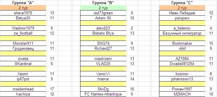 В рамках 16-го тура РФПЛ прошел 2-ой тур 2-го ГЭ Турнира по Чемпионату России, принесший следующие результаты игр в группах: