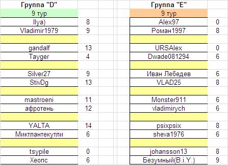 Турнирное положение в группах после сыгранного тура: