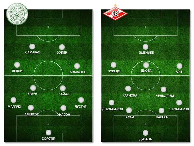 "Селтик": Форстер – Лустиг, Уилсон, Амброус, Малгрю – Браун, Кайал, Коммонс, Ледли – Хупер, Самарас.