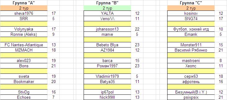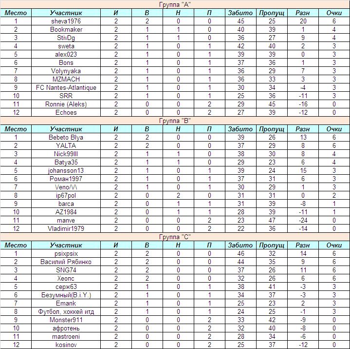 Турнирное положение в группах после сыгранного тура: