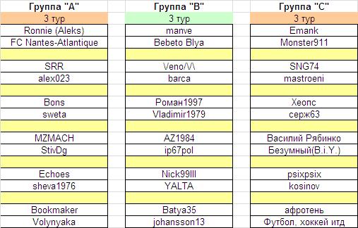 Расписание игр 3-го тура: