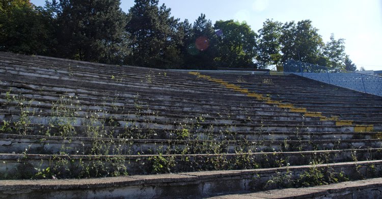 Спросите: почему же так деформированны трибуны? Отвечу: это виляние подземных вод и оползней. Что делает ситуацию ещё более тревожной. Дополнительно повлияло на ситуацию и строительство делового центра за северной трибуной в 90-е.