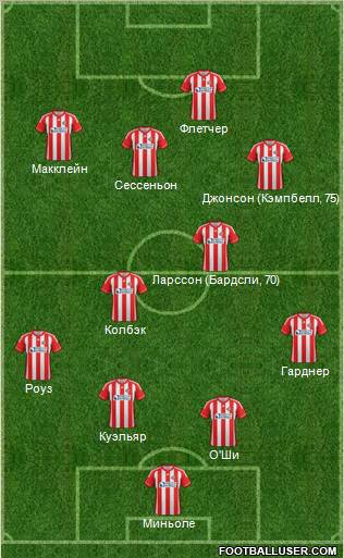 Атака "Сандерленда", проход по флангу Адама Джонсона, пас на Сессеньона, тот в удобном положении для удара. Замах, уда... нет, это пас, рискованнейший пас, наврядли пойдет. Но нет, мяч доходит до шотландца, браво! Флетчер замыкает прострел и...
