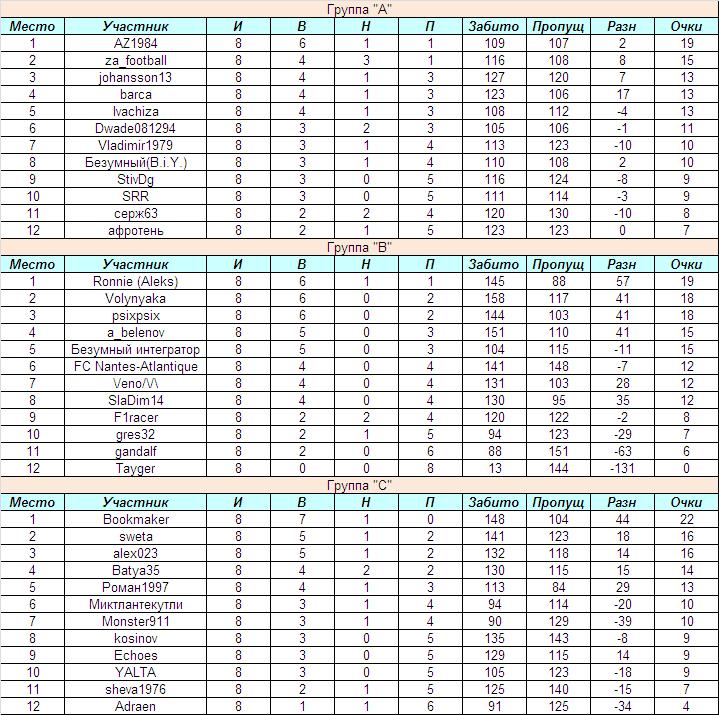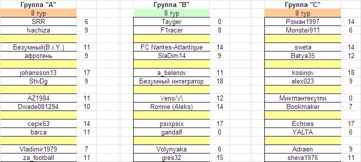 В рамках прошедшего 22-го тура Чемпионата Английской Футбольной Премьер-Лиги состоялись матчи 8-го тура 2 ГЭ Турнира по АПЛ, которые завершились следующим образом:
