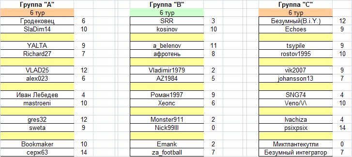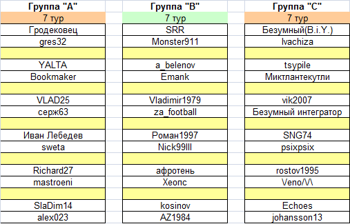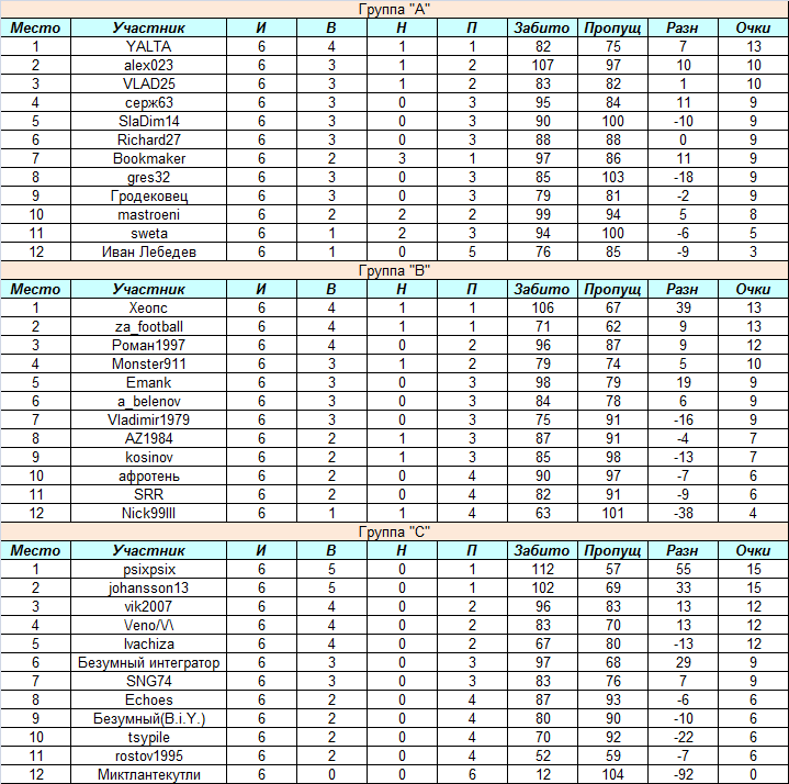 Турнирное положение в группах после сыгранного тура таково: