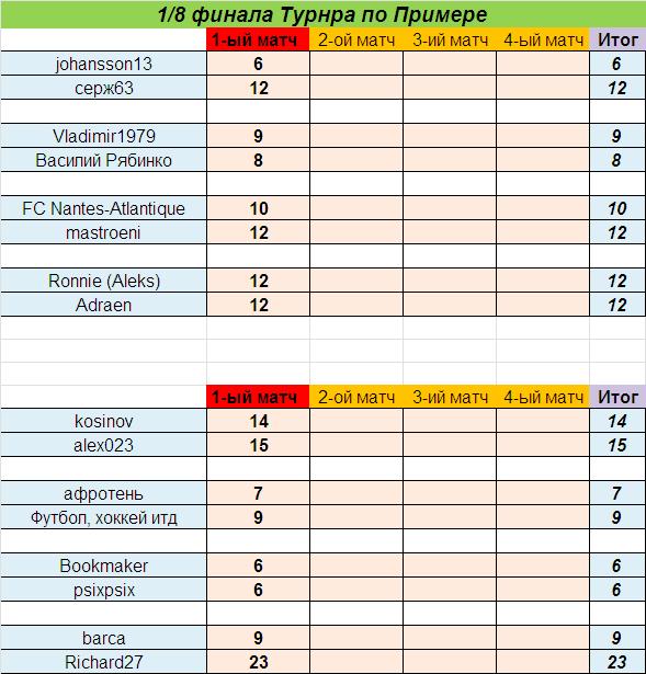 2-е матчи 1/8 финала Турнира по Примере пройдут в рамках 27- го тура (9-11 марта 2013 года).