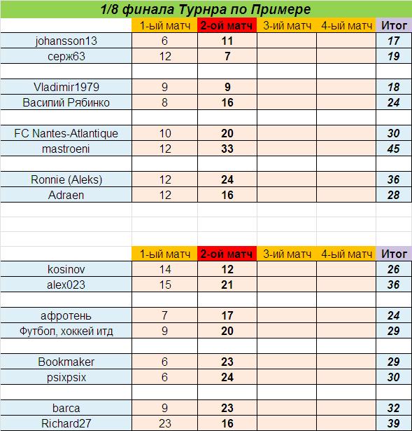 3-и матчи 1/8 финала Турнира по Примере пройдут в рамках 28- го тура (16-18 марта 2013 года).