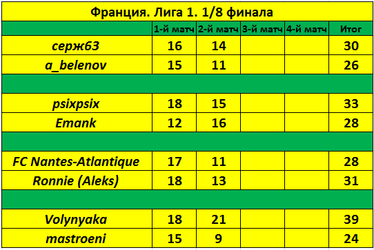 Франция. Лига 1. Вторые матчи 1/8 финала.