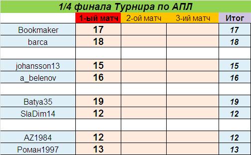 В рамках прошедшего 30-го тура Чемпионата Английской Футбольной Премьер-Лиги состоялись 1-е матчи 1/8 финала Турнира по АПЛ, которые завершились следующим образом: