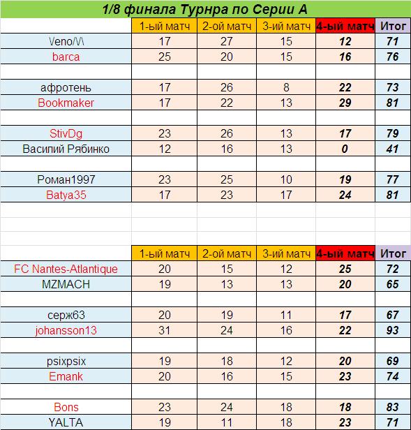 В рамках прошедшего 29-го тура Чемпионата Италии по футболу состоялись 4-е, заключительные, матчи 1/8 финала Турнира по Серии А, которые завершились следующим образом: