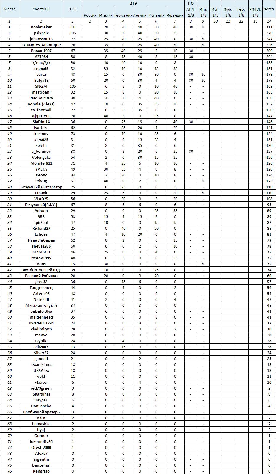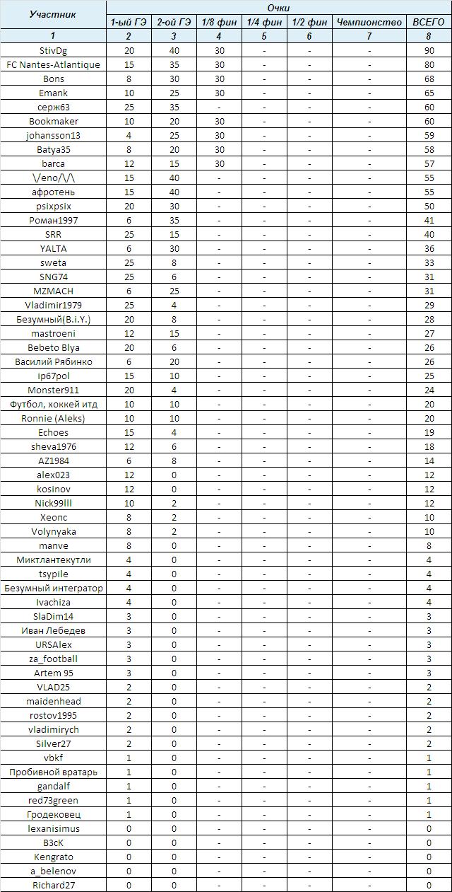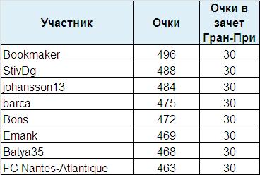 Согласно Регламенту, все прошедшие стадию 1/8 финала в зачет Чемпионата (и Гран-При) получают в копилку по 30 очков.