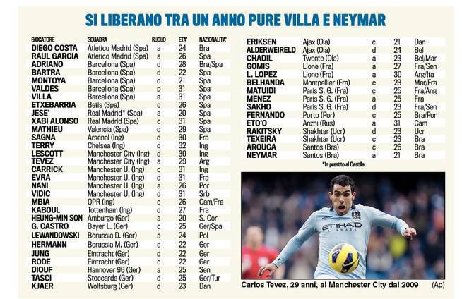 "Tuttosport" составил список футболистов, чьи действующие контракты рассчитаны до июня 2014 года. Многие из приведенных ниже игроков,могут сменить свою клубную прописку этим летом или же следующей зимой, если не продлят свои контракты.
